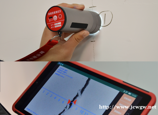 测量时,显微摄像头实时采集裂缝图像并通过无线 WI-FI传输给主机,主机实时显示接收到的裂缝图像,用户可通过自动和手动判读得到裂缝宽度数据,同时该设备具有数据管理功能,可将采集的图像数据保存起来。用户可以通过随机提供的U盘,将数据转存到计算机中,利用配套的分析软件进行更详细的分析处理。